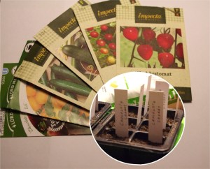 Eivät ole mitään bulkkikamaa nuo minun siemeneni. Ildiä lukuunottamatta kaikissa tomaattipusseissa oli vain kahdeksan siementä. Riittivät siis juuri ja juuri tähän kylvöön. Kurkku ’Zeina’ pisti vielä paremmaksi: pussissa oli vain neljä siementä.
