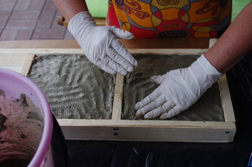 Olen aikaisemmin tehnyt betonista mm. lintukylpyjä raparperinlehdistä, pannunalusen kesäpöytään, pitsikuvioituja vateja ja lehtikoristeisia askellaattoja perennapenkkeihin. Mukavaa hommaa, johon mieluusti palaan kesä kesän jälkeen.