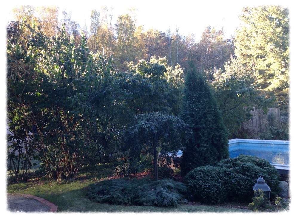 Lämmin syksy on kypsyttänyt sadon niin kasvihuoneessa kuin kasvimaallakin, ja puutarhan koristekasvit ovat jatkaneet kasvuaan hämmästyttävän pitkään. Viikko sitten pistelin poskeeni viimeisen kurkun kasvihuoneesta, ja viileäkaapissa on vielä kulhollinen hallaöiden alta pelastettuja kypsiä tomaatteja.