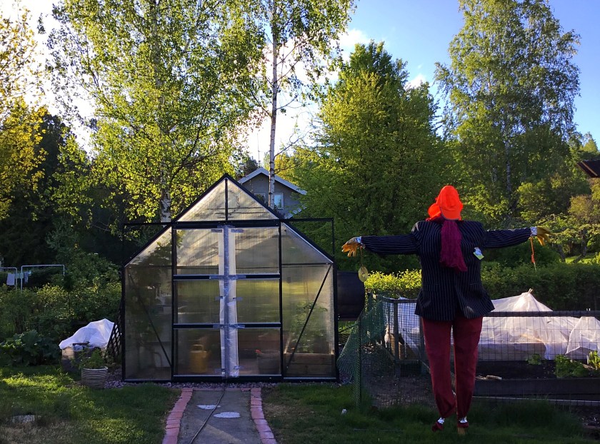 Kuluneella viikolla hallanvaara on ollut läsnä useampana yönä. Puutarhassa lämpötilat ovat käyneet noin kolmessa asteessa, kasvihuoneessa on alimmillaan ollut vain kuusi astetta. Kylmyyden lisäksi on ollut kovin tuulista.