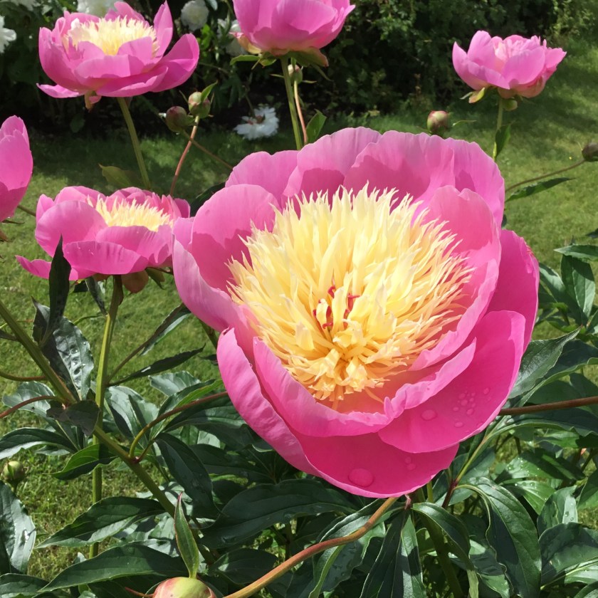 Mutta eniten ihastutti erään mallipuutarhan kiinanpioni ’Bowl of Beauty’. En ollut sellaista ennen nähnyt. Vaaleanpunainen maljamainen kukinto ja keltainen tiheä keskus olivat niin kauniit, että sellainen oli hankittava omaankin puutarhaan.