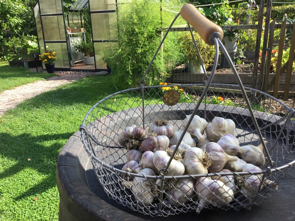 Elokuun runsaammat sateet sitten korjasivat tilannetta avomaallakin. Juureksia lukuun ottamatta kasvimaan sato muodostui kaiken kaikkiaan kohtalaiseksi: salaatit, pavut ja valkosipuli kasvoivat hyvin, kesäkurpitsaa tuli liiaksikin. Palmukaali kasvaa edelleen rehevänä. Tomaatteja saatiin kesäkuun lopusta alkaen yllin kyllin, ja niitä on kasvihuoneessa kypsymässä runsaasti edelleen. Ensin kypsyivät pienet kirsikkatomaatit; Tomatoberry ja Artisan Blush Tiger etunenässä. Isommat Jaune Flamme ja Perfect Flame seurasivat ja viimeisenä tuli Dark Galaxy.