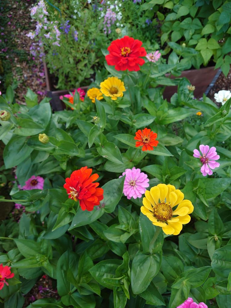 Ystäväni kasvatti viime kesänä upeita zinnioita, ja niitä minäkin nyt halusin. Penkkiin tulee kahta eri sekoitusta, eli Marylandzinnia ’Zahara Double Mix Brilliant’ ja Takii’s Choise. Lisäksi sekaan tulee muutama kirjoperhoskukka.