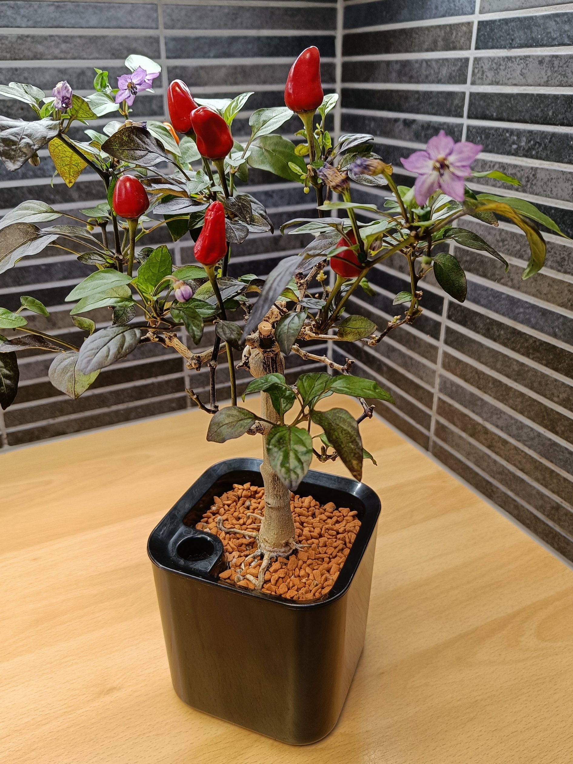Mutta pikkupuita voi kasvattaa myös chileistä, ja silloin puhutaan boncheista. Eli bonsai + chili = bonchi. Käsittääkseni bonchi-sanan on lanseerannut meidän oma chiligurumme, suomalainen chilinkasvattaja ja -jalostaja Jukka ’Fatalii’ Kilpinen. Täältä fatalii.net-sivustolta löytyy tietoa ja opastusta boncheista (englanniksi).