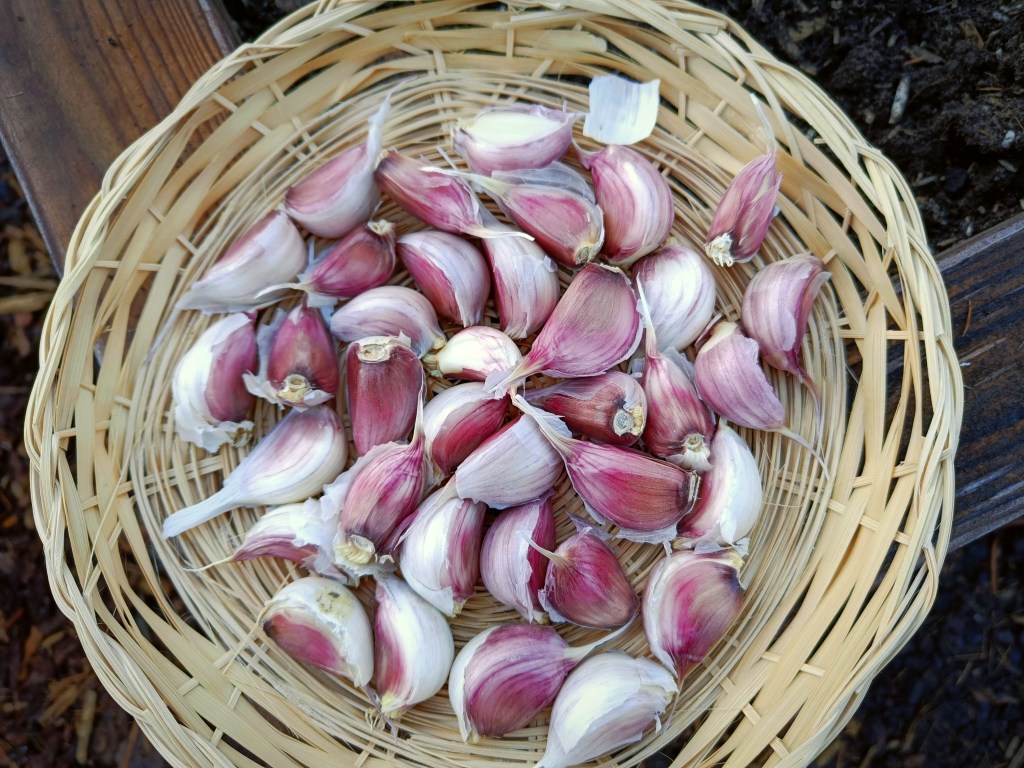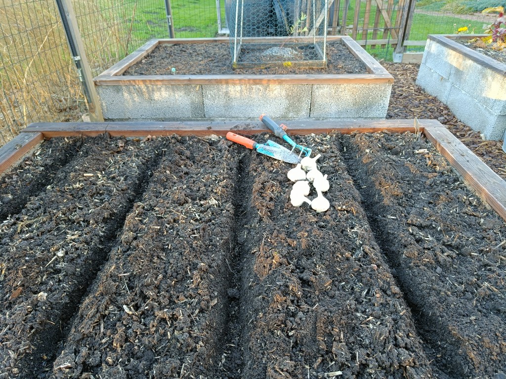 Päiväkirjamerkintöjeni mukaan olen viimeisten viiden vuoden aikana istuttanut talvivalkosipulit lokakuun 24. päivän ja marraskuun 13. päivän välillä. Oikea istutusajankohta on aina vähän arpapeliä. Kynsien tulisi ehtiä juurtua ennen maan jäätymistä, mutta toisaalta ne eivät saisi kuitenkaan lähteä kasvattamaan maan pintaan nousevia versoja.