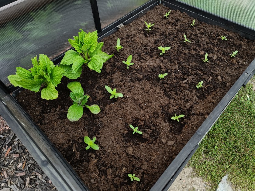 Olen tänä keväänä oman mittapuuni mukaan kasvattanut aika paljon kesäkukkia. Suurimman osan esikasvatin sisällä hyvissä ajoin maaliskuusta alkaen, viimeisimmät eli kehäkukat laitoin itämään vasta huhtikuun puolivälissä. Suorakylvöjä en tänä vuonna tehnyt käytännössä lainkaan, mitä nyt maaliskuussa ripottelin tulppaanien alkujen sekaan muutaman oranssin kehäkukan siemenen. Nekin kaivelin sirkkalehtinä pois ja laitoin pariksi viikoksi kasvihuoneeseen ennen lopullista istutusta. Tässä linkki helmikuiseen kylvösuunnitelmaan. Tietoja kylvöistä löytyy myös Päiväkirja-sivulta.