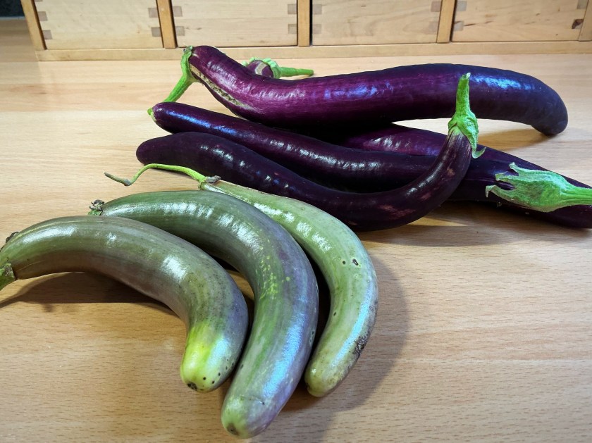 Tänä kesänä halusin kasvattaa jotain itselleni aivan uutta ja ehkä vähän eksoottistakin. Munakoiso on herkullista ja osa lajikkeista pärjää myös avomaalla. Meraki Seedsiltä löysin nepalilaista alkuperää olevan Wenta-lajikkeen ja päätin kokeilla sitä. Wenta on pesastava ja kasvaa noin 60 senttiä korkeaksi. Se on nopeakasvuinen ja aikainen. Wentat hedelmät ovat violetteja, noin 20 – 25 cm pitkiä pötkylöitä, joiden halkaisija on noin 3 cm. Maku on mieto ja pehmeä. Pienihedelmäisten lajikkeiden sanotaan ehtivän kypsyä isoja paremmin viileässä ilmastossa.