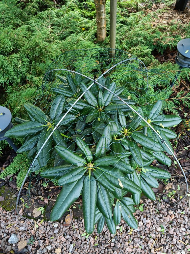 Uskon ja toivon, että suojaukseni toimii myös tänä talvena ja uusimmatkin alppiruusut ’Caroline Allbrook’ ja ’Fantastica’ saavat keväällä jatkaa kasvuaan hyväkuntoisina.