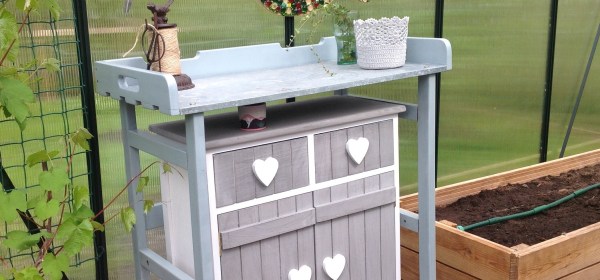 Minulla on ollut kasvihuoneessa pieni taimipöytä jo useamman vuoden. Pääasiassa se on toimittanut laskutason virkaa, mutta välillä käytän sitä myös varsinaiseen tehtäväänsä eli taimien koulimiseen ja istuttamiseen.