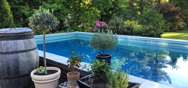 (23.5.) Käytämme puutarhan kasteluun maalämpöpumpun poraamisen yhteydessä tehtyä kesävesikaivoa. Vesi nostetaan pienellä sähköpumpulla ja johdetaan puutarhaletkulla eri puolilla pihaa oleviin saaveihin. Vähän siinä on värkkäämistä, ja