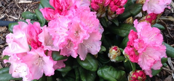 (14.6.) Minulla on neljä erilaista alppiruusua. Aivan sattumalta olen onnistunut valitsemaan sellaiset lajikkeet, jotka kukkivat mukavasti hieman eri aikoihin. Tänä keväänä kukintaa on kestänyt jo useamman viikon. Ensimmäisenä